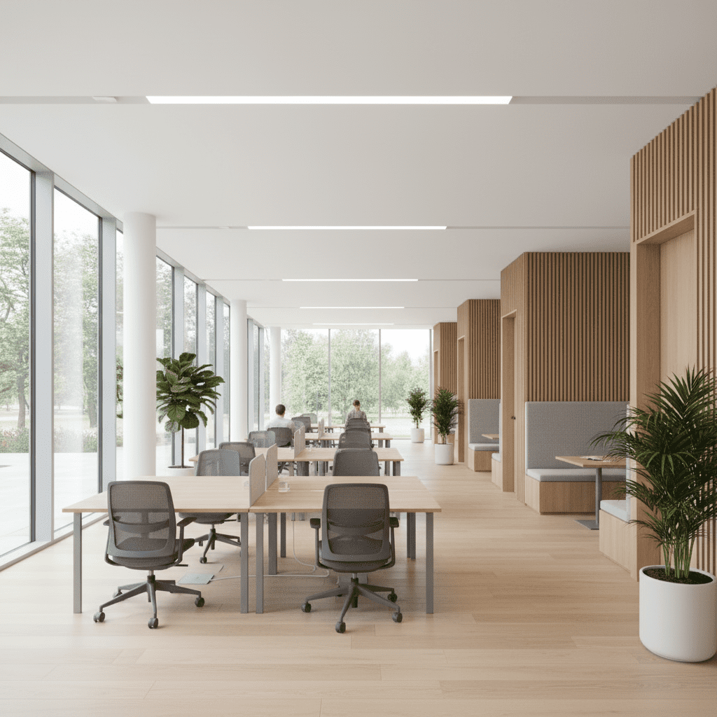 O mobiliário e a configuração espacial comunicam marca e experiência. Cada projeto é uma afirmação de estilo, pensado para transmitir confiança e proximidade.